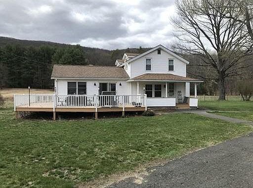 This must see fully renovated 3 bedrooms, 1.5 bath colonial farmhouses nestled on 4.75 acres of private cleared land with mountainous views. This open concept home has been totally remodeled kitchen (2016), granite countertops, stainless steel appliances, hardwood flooring, recessed lighting and new carpeting on the second level. The spacious living room features 3 sliding glass doors that open up to a stunning large wrap around deck and scenic views in just about every vantage point. The first floor large master features a custom walk in closet and master bath. Other great features include first floor laundry as well as central air. Property also has the potential to be subdivided. Buyers to do their due diligence in regards to land usage.
