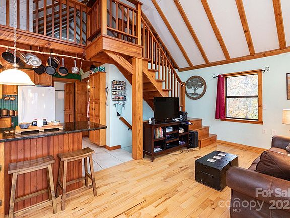 Tucked away in a private, protected holler just 15 minutes from downtown Mars Hill, this expanded A-frame cabin offers the perfect blend of mountain charm and modern comfort. Soaring vaulted ceilings with exposed beams welcome you into the open living area, while the main level features a spacious bedroom, 1.5 baths, and a bright kitchen that opens to a large deck ideal for outdoor dining or simply soaking in the peaceful surroundings. The upstairs loft provides a versatile space for a third sleeping area, office, or cozy retreat, and the finished basement includes an additional bedroom or family room plus laundry. Enjoy a private patio off the primary suite, a large workshop and shed, ample parking, and even a chicken coop. Long-range mountain views shine through in fall and winter, with wildlife and starry skies year-round. With fiber internet and no storm damage history, this is easy mountain living at its best. Schedule your showing today and experience the serenity for yourself!