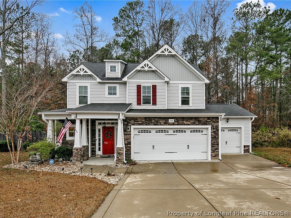 Well maintained home in the community of Coopers Creek on a cul-de-sac. This large open floor plan features 3 bedrooms, 2 and half baths, a large loft area on the second floor, and a 3 car garage. This charming home is full of character! Welcoming entry/foyer with pet area under the stairs that opens to the main living spaces. Cozy living room with gas fireplace that leads to kitchen boasting white cabinetry and granite counter tops and stainless steel appliances updated in 2020. Upstairs you'll find the laundry area, loft area, two good sized guest bedrooms with a jack & jill bathroom, and the primary suite with walk-in closet and bathroom with a dual vanity, garden tub, and separate shower. The backyard is privacy fenced with a covered patio and the perfect oasis for hanging out or entertaining. New HVAC in 2021. Convenient to shopping, restaurants, and easy commute to Fort Bragg. Schedule your showing today!