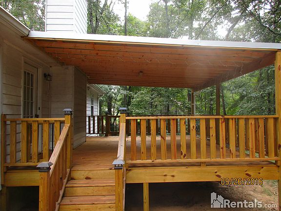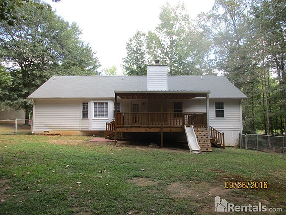 Three bedroom, two bath split bedroom plan ranch featuring kitchen with breakfast bar, pantry, living room with fireplace and built in bookshelves, large covered back porch and fenced back yard on 1.62 acres. Pets permitted with pet deposit.
