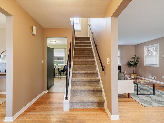 This inviting, sought-after West Irondequoit 3 bdrm, 1.5 bath 1,410 sq ft Col w/2 car attached garage boasts vinyl siding, Thermopane windows, dble wide driveway & is located minutes from I Square. Décor wall paint, hdwd floors, plush carpeting (2022) on stairs & 2nd flr bdrms. Eat-in kitchen w/newer stainless-steel appliances 2019-2021, frml dining rm & spacious living rm with mantled fireplace & charming built-in bookshelves. Updated 1st flr powder rm, sparkling 2nd flr main bath completely gutted, expanded & remodeled 11/20 with heated floor & lighted wall mirror. Step into your backyard oasis – a private retreat adorned with custom Woodtex lawn shed, fully fenced yard with fence screen for privacy. Bask in the sun on the 16’ x 24’ custom stamped concrete patio shielded by a Sunsetter 17’ motorized Awning providing the perfect balance of shade and sunlight & Inground lawn sprinkler system. Maintaining this picturesque haven is effortless. Your outdoor sanctuary awaits, promising tranquility and privacy. Greenlight internet & Nest thermostat. 200 Amp service, insulated garage walls, new Rheem hot water tank 2021 & cleaned and service HVAC UNITS 2023. Delayed Neg on 1/10/2024.