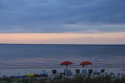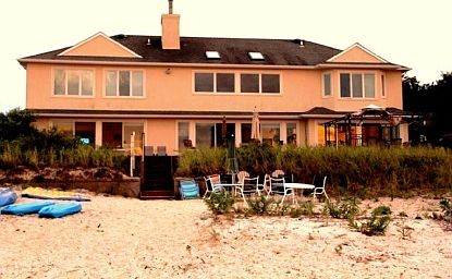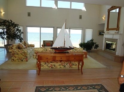 An inviting circular drive takes you to this stately home set back from the road. You can't get closer to the beach than from this home. Oversized decking ends in the sand with expansive views and stunning sunsets. Upon entering the home the two story living room with fireplace and wall to ceiling windows providing unlimited water views takes center stage. Everything is oversized in this house including the kitchen with two ovens to the dining area that is open to the kitchen and living room. The two sided fireplace warms the living room and also the large, comfortable den area. A huge laundry area, full bath and additional powder room complete the first floor. Four comfortable guest rooms serviced by two full baths on one side of the second floor plus a huge master bedroom suite and master bath encompass the other side of the home.