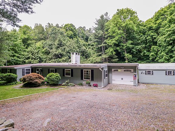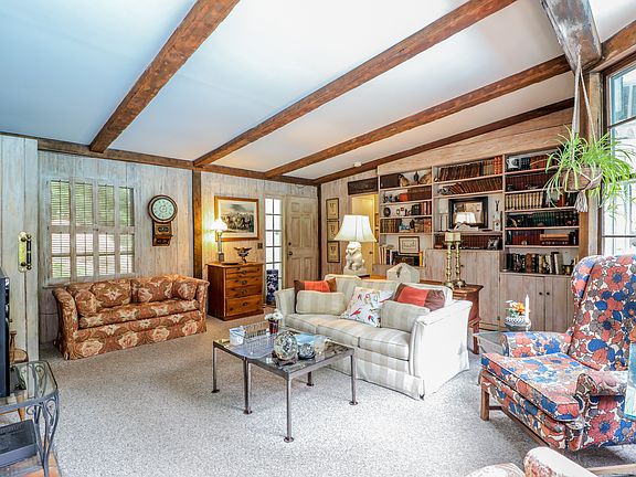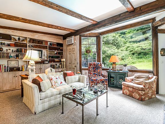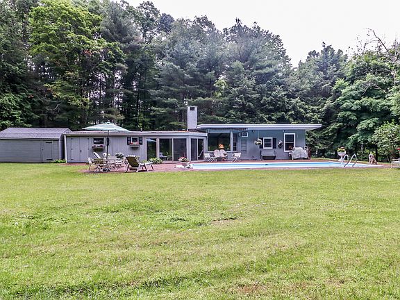 It's hard to imagine a more relaxing spot...tucked away on a country road, this one-acre property borders protected land, & is rich with the scent of pine & the soothing sound of a babbling brook amid moss covered rocks. An inviting in-ground pool & brick patio are the perfect accents to the private, level yard. If your quest is to "simplify," this streamlined Ranch supports that cause. Rustic beams, built-ins, sliders & oversized windows bring both charm & natural beauty into the home. The floor plan has a comfortable flow and includes a spacious family room, peaceful sunroom, dining room, & an efficient galley kitchen. Two bedrooms & 2 full baths complete the layout. Living here on Obtuse Road blends the best of both worlds: A setting where you can leave your stress at the door & yet still enjoy the conveniences of suburban life.