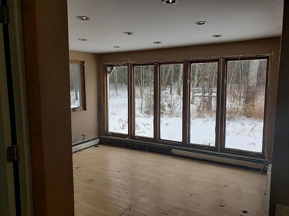 Great time to purchase your summer project. Large living room, kitchen, sun room and bathroom on first floor. Three bedrooms on second floor. Almost 4 acres of land. Small brook in back yard. Sold as/is. Agents please read firm remarks.