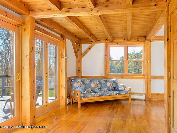 Sun-filled 2 story post and beam home looking for its next owner. A picturesque private road leads to this 2 bedroom, 2 bath charmer with hardwood floors, a woodstove for those chilly winter nights, a full walk out basement and many windows and glass doors for all day sunlight and views of nature. A deck overlooks the spacious backyard. With 4 acres of woods and a partly fenced open meadow the idea of animals or solar could be a possibility. Nestled in the quaint mountaintop hamlet of Cragsmoor, with its vast amount of protected land, over 5000 acres of Sam's Point Preserve to hike and enjoy makes this a perfect weekend get-away or full-time retreat. Under a 2-hour drive to the GW bridge and close to commuting, the dream of a healthy lifestyle of live , work, and play is attainable.