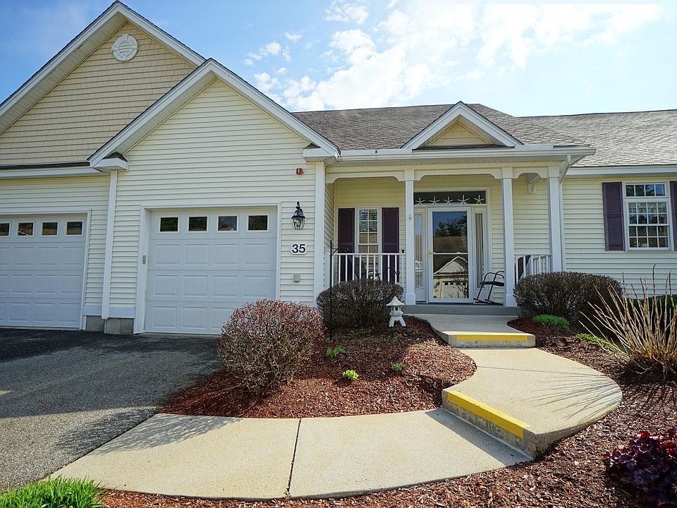 Showings begin Friday 4/19/24 at Open House from 5:00 to 7:00 p.m., Saturday 4/20 from 1-3 and Sunday 4/21 from 1-3 for this tastefully updated ranch style unit located in this hidden gem of a 55 plus community in Litchfield. Pride of ownership is evident of this particular owner even down to the neat 1 car garage. Step in to an inviting foyer to the fireplaced living room with hardwood floors and ceiling fan, open to the formal dining area with hardwood flooring that extends into the kitchen with sparkling custom granite countertops, ceiling fan, tiled backsplash and newer stainless appliances; off the hallway you will find a large half bath with new washer and dryer; a linen closet off the hallway; a generous sized Primary Bedroom with walk-in-closet, and an updated Primary Bath with a beautifully custom designed tiled step-in-shower and granite countertop; the second bedroom used as a den/office leads to the newer Trex deck overlooking a serene yard. The huge basement can handle all your storage needs. This unit has a whole house generator and a newer dehumidifier added to the furnace. This is not one you want to miss.