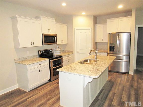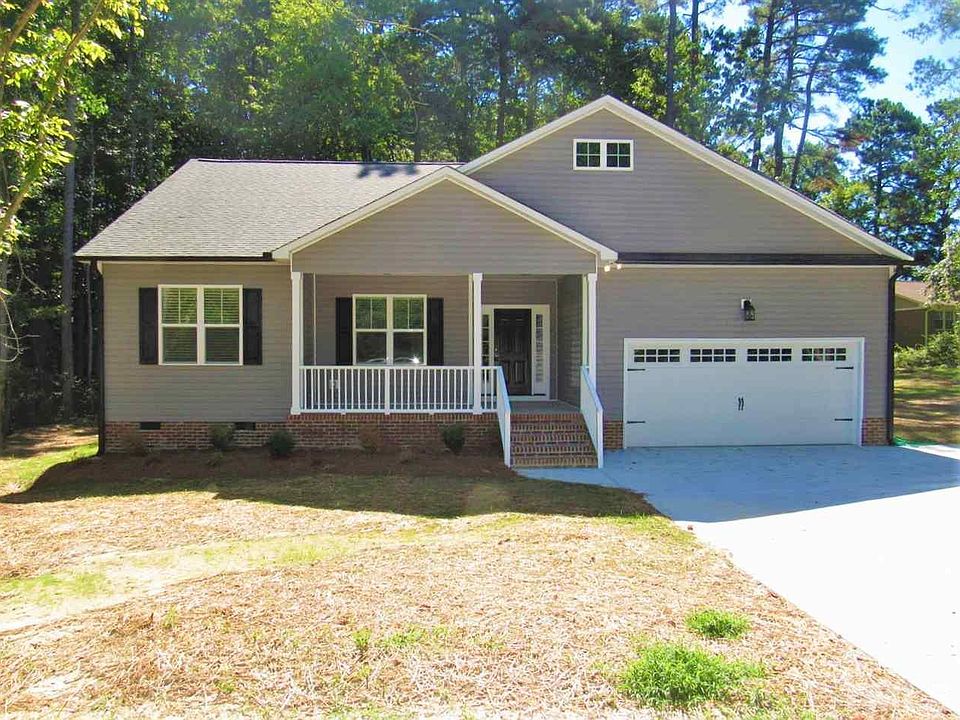 Open layout Ranch style plan sitting on a cul-de-sac lot! 2 car front entry garage & covered front porch for gorgeous curb appeal. Spacious, open living rm has a cathedral clg & gas log FP. Formal dining area off the entry foyer. LVP floors through the main living areas. Large kitchen has Granite c/tops, serving bar, & a WI-pantry closet. Private master has a great 9' WI-closet, double bath vanity, garden tub, & sep shower. Separate laundry rm. Custom wood closet shelving. Rear covered porch!