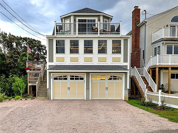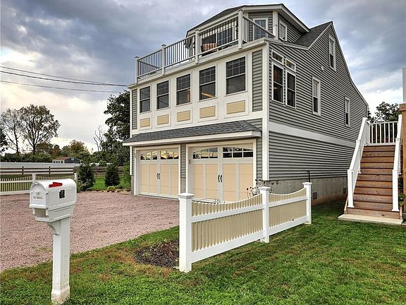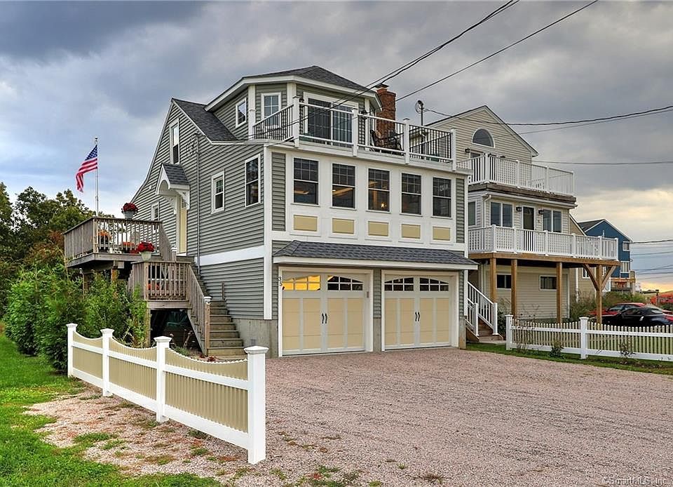 Spectacular renovated Contemporary Cape just six houses to Shell Beach in East Haven's peaceful Morgan Point neighborhood. This gorgeous home boasts southwest exposure with fantastic views of Long Island Sound and tranquil tidal marsh including two lighthouses (Southwest Ledge and Five Mile Point Lighthouses). It was lifted and completely rebuilt within the last five years. It's just like a new house! The main level features an open layout. Spacious great room with gorgeous walnut floors, recessed lighting, trey style ceilings with accent lighting, gas fireplace with custom mantle and lots of windows to capture amazing seasonal sunsets over Lighthouse Park. Fabulous one year old kitchen with abundant cabinets, granite counters, wet bar, walnut floors, recessed lights, beautiful tiled back splash and peninsula. Two bedrooms (one currently used as a den/office), laundry and tiled full bath. The second level features a master bedroom suite with stunning bathroom with tiled walk-in shower. Slider to large deck with amazing views. The ground level features a three car garage and large storage room. Large multi level wrap around deck overlooking yard. This home was thoughtfully redesigned and built with quality materials & craftsmanship. Convenient location just 15 minutes to Yale, Downtown New Haven, hospitals and Union Station.