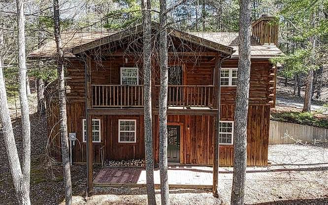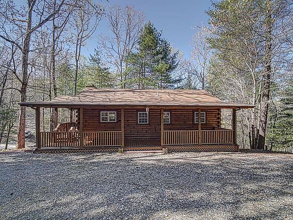 Immaculate 2 Br / 2 Ba True Log Home Nestled in the North Georgia Mountains, this cabin has the privacy and the "in the mountains" feel you have looked for! This Peaceful & Affordable Mountain Get-Away is situated on just under 1 acre of land with no HOA fees and NO RESTRICTIONS! You are sure to be amazed at the open floor plan with cathedral ceilings & wood burning fireplace. The must-have features include Oak kitchen cabinets, hardwood flooring, with a nice blend of drywall and wood throughout and the covered porches. This cabin offers one level living w/ laundry on main.There are many options with the unfinished basement that is stubbed for a 3rd bathroom, and a drive-under 1 car garage. No yardwork to do since it is all natural landscaping! Tons of parking space. Perfectly located between Blue Ridge and Blairsville, with easy access to the 4 lane road on all paved roads!