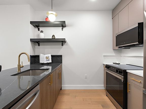 Photos represent finishes not actual unit. Mortgage rate buy down is now available. A first-of-its-kind opportunity in McGinley Square. The first boutique condominium development of its kind in McGinley Square. This exclusive collection of 35 thoughtfully designed residences, ranging from one to three bedrooms, offers a rare chance to own a piece of one of Jersey City’s most rapidly evolving neighborhoods. Inside the Residences Each home has been curated with precision, blending modern elegance with everyday comfort. Kitchens feature sleek Samsung appliances, striking quartz countertops—including MSI Soapstone Metropolis and veined white finishes—paired with bold brass hardware and faucets. Select layouts also offer open wall shelving for a warm, personalized feel. Bathrooms are equally refined with matte black fixtures, porcelain tile, and reeded glass shower panels in the primary suites—balancing sleek design with inviting texture and tone. Expansive windows, engineered wood flooring, solid core doors, smart entry systems, and in-unit laundry round out a living experience rooted in style and function. A Boutique Living experience redefines living with amenity-rich common spaces, including a designer lobby, video intercom and security system, bike storage, and a dedicated package room. Every detail—from hallway finishes to hardware selections—speaks to a vision that’s elevated, intentional, and timeless. Whether you're a first-time buyer or a seasoned homeowner, this is a rare opportunity to be part of the next chapter of McGinley Square—owning not just a home, but a piece of the neighborhood’s story.