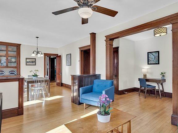 A treasure in prime East Arlington! Beautiful tree-lined double street surrounded by over 20 historic homes. Welcoming front porch opens to spacious foyer room for many uses. Exquisite wood details incl. wood trim, HW floors, doors, & dining hutch. Additional original features include the high ceilings, over-sized windows incl. front lattice designs & the hardware on the doors! Open living & dining room w brilliant SE light & bow windows adds to a feeling of spaciousness. The many updates blend w/ charming details. Dazzling white eat-in kitchen w/ plenty of cabinet & counter space plus newer stainless-steel appliances. Back door access to expansive back yard w/ vegetable & flower gardens. Generously sized bedrooms w] ample closet space. Recently painted renovated tile bathroom w bonus linen closet in foyer. 2 parking spaces near the back door. Amazing lower-level space for laundry, walk-in closet, workspace, & convenient exterior access via full walkout door. Unbeatable location. A Gem