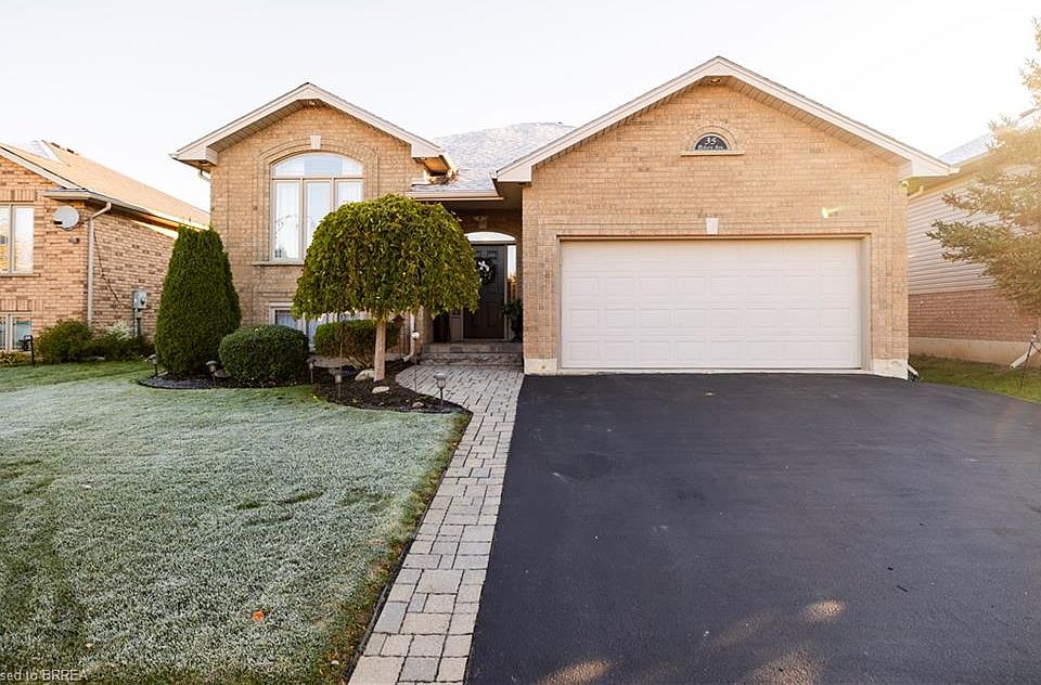 Pride of ownership is evident in this well-maintained raised bungalow located in a sought-after Brantford neighbourhood. Built by the original owners in 2005, this home offers a bright, functional layout and plenty of living space for the whole family.    The main floor features an open-concept living and dining area, a spacious kitchen with ample cabinetry, and a walkout to the backyard. There are two bedrooms on the main level, including a primary suite with a private ensuite bathroom.    The lower level offers a large recreation room, two additional bedrooms, and a rough-in for a future bathroom, providing excellent potential for extended family or guests.    Additional features include a double car garage, double driveway, and a well-kept exterior with great curb appeal. Conveniently located close to schools, parks, shopping, and highway access, this property is move-in ready and a great opportunity in a fantastic neighbourhood.