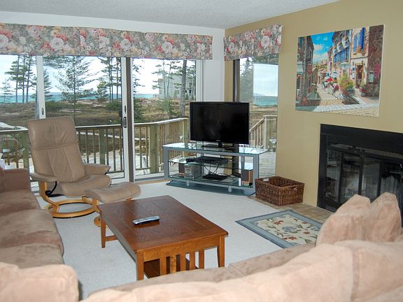 Please contact Bob or Ranae Ihme at LVR Realty about this listing! They can be reached at 231-334-6100! Whole ownership condominium. South Beach 35 is a four bedroom, three bathroom beachfront condominium in The Homestead with beautiful water views, easy beach access, two large decks, and two living areas to accommodate almost any family or group! Situated as a lower level, end unit, simply walk out the decks to the beach. Updates include fresh paint, newer carpet, stainless steel appliances in the kitchen, and a tiled Jacuzzi tub in the master bath. Enjoy strolls along the water and breathtaking sunsets, all just a mile from downtown Glen Arbor.