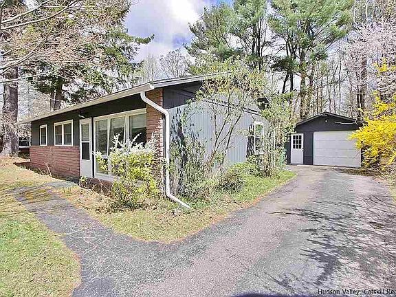 AFFORDABLE WOODSTOCK COUNTRY HOME located on the NYC Trailways bus route. Only 2 min to the village and an easy walk to restaurants, theater and health food store. Easy living on 1 level with walkout to a LARGE FENCED rear yard. Sunny and ready for an organic garden or many other possible uses...... Detached garage is oversized and has a rear room with electric, windows and insulation. Could easily be used for a weekend air B&B with installing a side door. PLEASE NOTE- Master bedroom used to be 2 bedrooms. Could easily be converted back!
