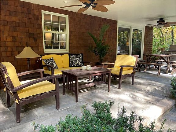 This rambling, oversized Cape/Colonial on sought-after Ox Bow Lane is a MUST SEE. Perfect for both entertaining and privacy, it's 26 feet of French sliders open to a covered bluestone patio and secluded back-yard with large fire pit and additional concrete patio. Sunny eat-in kitchen boasts gorgeous NEW plank tile flooring and all NEW stainless appliances. Custom crafted countertops made from repurposed North Carolina barnwood and original painted cabinetry keep this thoroughly modern kitchen tied in to its country-cape roots. Closets, cabinets and storage are everywhere. 1st floor Master Bedroom Suite has His and Her Double Closets and stunning bath with Soaking tub and enormous Stone & Tile step-in Shower with built in limestone bench. The 2 large additional Bedrooms on 2nd Floor share a full bath and a 3rd spacious passthrough room that can be used as a 3rd bedroom, playroom, studio space or study. Oversized walk-in Attic spaces, 7 huge closets, and built-ins everywhere allow for abundant storage and endless possibilities upstairs. Circular driveway redone in 2019 with hassle-free chip stone finish over an asphalt base highlights a professionally landscaped yard. Don't miss the possible Office, Au-Pair, Exercise or In-Law off Mud Room/above Garage with separate entrance, storage space and full bath. 2 car Garage has Automatic Door Opener programmable to cell phones or Amazon delivery codes. Oil-fired Furnace, 50 gal water heater, and well pump all replaced in last 4 years.