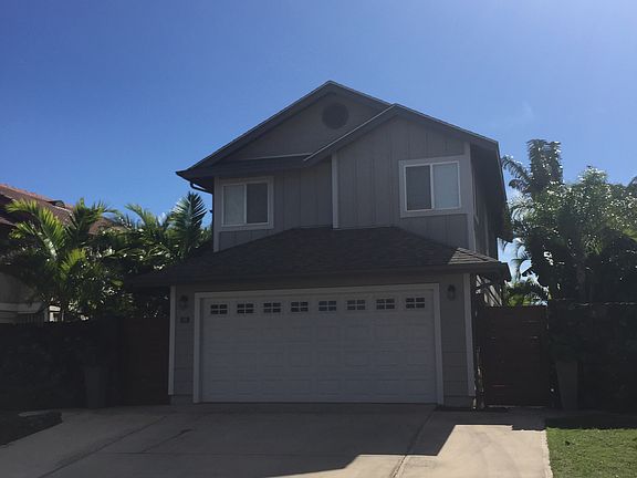 Relax and enjoy the comforts of this 3 bedroom, 2.5 bath home located at The Legends at Maui Lani~a perfect location to call home! You'll enjoy the easy care laminate flooring on the lower level, custom window blinds, lighting & ceiling fans, along with central a/c and reverse osmosis water filtration system. Upstairs bedrooms are light and airy with corner windows in the over-sized recreation room. The master suite is spacious with vaulted ceilings, walk-in closet and private bathroom with double vanity and whirlpool tub. Lush tropical landscaping provides a refreshing retreat and has an automatic sprinkler system. The concrete driveway has been been expanded to allow parking for 3 cars. Maui Lani Parkway connects you to everything you need and desire: Golf, shopping, Maui Arts & Cultural Center, Medical Facilities and centrally located to access the resort communities of Kihei and Kaanapali. Contact a local REALTOR regarding details of this short sale.