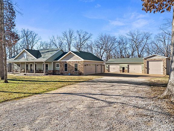 Pride of ownership is evident in this impeccably maintained custom 1865 SQ FT home, nestled in a quiet subdivision on 3.7 wooded acres. The custom kitchen has quartz counters & 42 inch staggered cabinets, stainless appliances & large center island w/ breakfast bar. The great room has stacked crown molding & a stone ventless gas fireplace plus beautiful hardwood floors. The unfinished basement has a rough in for full bath & a walkout. Master bedroom & kitchen both open onto a 32 x24 exposed aggregate patio with built in fire pit, a perfect place to spend your summer evenings. There is a 2,800 SQ FT detached garage that has a 20'x50' area with 16' walls & a 14'x14' overhead door, ideal for RV or boat storage & a heated 50'x36' area with 12' walls & two 16'x10' overhead doors. Spend your mornings drinking coffee on the covered 49'x8' front porch & you will find that living here is like being on vacation all the time. This home has too many features to mention, schedule your showing today!