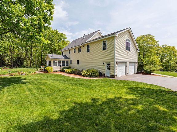 Impeccably Maintained, A Peaceful Retreat. Your own private oasis in one of Auburn's most desirable subdivisions. Meander up the newly paved driveway, to your home situated perfectly on over 2 acres, nicely spaced from other homes. Stroll down the brick walkway, as you step onto the Farmer's Porch and into the Foyer. Hardwood floors greet you throughout the first floor. You'll find the formal dining room with wainscoting & moldings to your right & the office w/ french doors to the left. The well-appointed kitchen features granite counters, a two-tiered island and stainless appliances. There is a spacious dining area that abuts the four-season sunroom with new gas stove. The great room is the perfect space to entertain, with soaring cathedral ceilings and endless sunlight with a palladium window in the front, skylights and a slider to your new trex deck. The yard is impeccable, with organically maintained garden beds throughout. And, there's even room for a pool! Upstairs, the oversized Primary Suite features two walk-in closets, and room for a sitting area. The primary bath has dual vanities, jetted tub & a newly updated tiled shower. Finishing out the second floor are 3 spacious bedrooms and another full bathroom. The unfinished basement offers plenty of storage space. Two zone heat, Central AC, Generator stays. Enjoy all the beautiful Auburn has to offer including Lake Massabesic, walking trails and more! See update list.