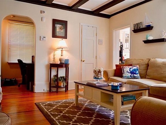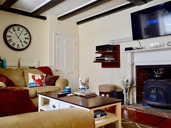 Fully furnished first floor one bedroom condo steps from busy Thames Street available now for an annual rental at $1600 plus utilities. Fully updated kitchen with granite countertops, a built in wine fridge and updated appliances. The living room offers a working fireplace for cold winter nights, electric baseboard heat and a ventless/ductless A/C wall unit with heat for supplemental heating. There is a small office space between the living and dining area perfect for after hours work or studying. The large bedroom has two generous closets and a non-working fireplace for decor. Off street parking for one car in a detached garage. Laundry is in the basement accessed from the interior.