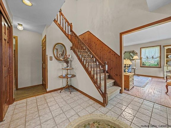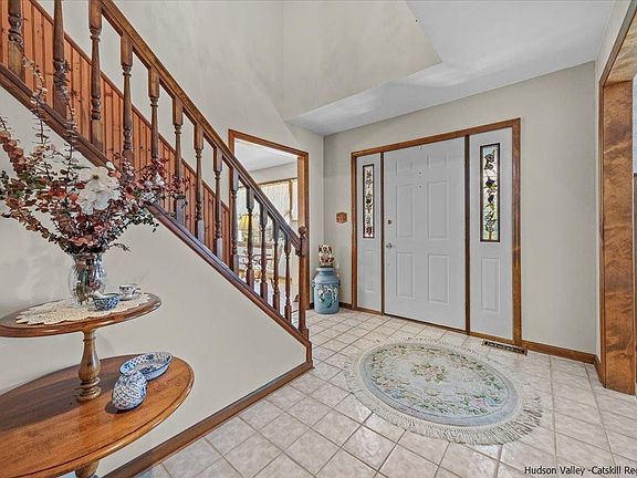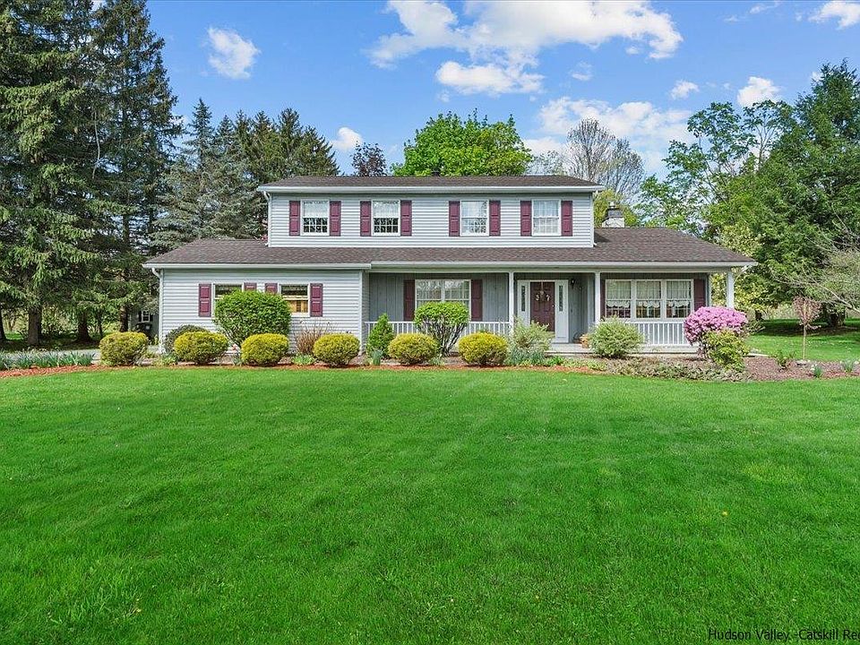 Welcome to your dream home! This magnificent 3 bedroom, 2.5 bathroom custom-built colonial is situated on 1.4 acres of picturesque, manicured landscaping, creating a truly tranquil and private setting. As you approach the home, you'll be greeted by its classic colonial design and charming details, such as the well-manicured lawn, mature trees, and colorful plantings. Step inside, and you'll be amazed by the impeccable craftsmanship and attention to detail that is evident throughout the home. The first floor features a spacious, open-concept living area, perfect for entertaining guests or relaxing with family by the gas fireplace for. The gourmet renovated kitchen is a chef's dream, with top-of-the-line appliances, custom cabinetry, and plenty of counter space for meal prep. Off of the kitchen you will find a formal dining room with plenty of room for family near and far, as well as the cozy eating nook, drenched with natural light and the perfect space to sip coffee ad enjoy daily meals with family. Upstairs, you'll find a luxurious primary suite with an en-suite bathroom, providing the perfect retreat after a long day. The two additional bedrooms are equally spacious and well-appointed, providing plenty of room for family or guests. The second floor also features the second full bathroom with tub/shower combo. The finished basement offers additional living space, which can be used as a recreation room or home office, while the two-car garage provides ample parking and storage space. Step outside, and you'll find your own private paradise, complete with a covered rear deck, beautifully landscaped yard, perfect for summer barbecues or a game of catch. Whether you're sipping your morning coffee on the front porch or watching the sunset from the back patio, you'll love spending time in this serene and peaceful setting. This home truly has it all, from its simple design to its impeccable care and breathtaking outdoor spaces. Don't miss out on the opportunity to make this dream home yours!