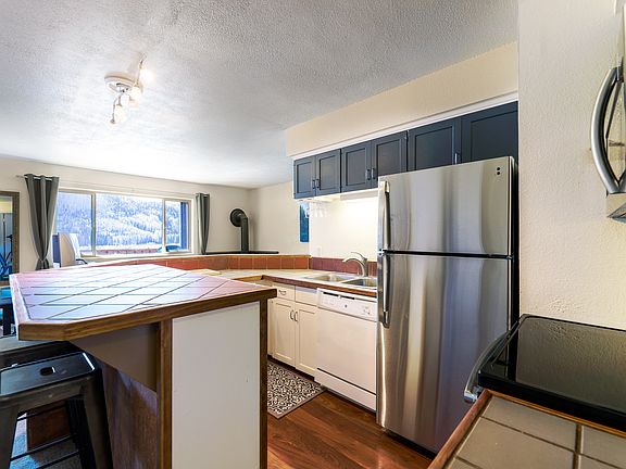 To see this home please Call 406-579-5939 - - One Bedroom, One Bathroom condo with big views of the valley floor. Gas Fireplace, Stainless Appliances, In unit Washer/Dryer, Deck on the sunny side, Two Parking Spaces and PETS allowed. Low HOA fees and NO REIT. Perfectly located between Telluride and Mountain Village. Bike path and bus stop adjacent to the property.
