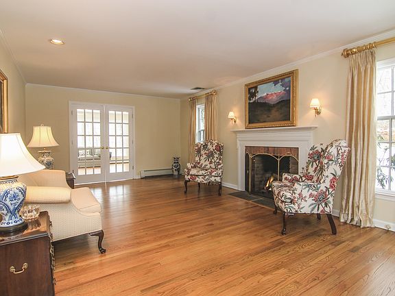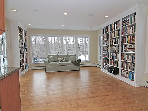 Enter the circular driveway to this pristine, spacious, updated residence located in a beautiful and convenient Wilton cul-de-sac. The handsome kitchen with stainless steel appliances opens to a two-story beamed great room with walls of windows. If you love to entertain, enjoy the large gracious dining room with marble fireplace. The living room with fireplace opens to a beautiful sunroom with bookcases, wet bar and French doors that open to the deck. There is also a cozy library with a wall of bookcases. Upstairs, the master bedroom has two walk-in closets and private, luxurious bath. There is an additional en suite and two more bedrooms and private office. The lower level is light and bright with a playroom with bookcases, desk, exercise room and storage. Whole house generator, multiple decks, patio, hot tub and great yard.