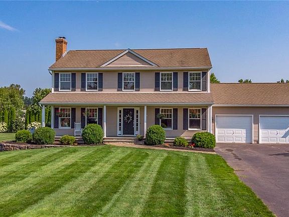Welcome home Step inside this fantastic, tastefully decorated, col. style home with a covered front porch and get ready to fall in love This beautiful home looks like it should be featured on an HGTV show, and is nestled on a 1.34 acre corner lot in a cul-de-sac location. This home features an updated eat-in dream style kitchen with new Quartz counters, shiplap walls, Quartz counters, new light fixtures and stainless steel appliances. There is a slider to the upper level 32'x20' deck with a pergola to add some nice shade where you can relax, enjoy a drink, and take in the activity of a good basketball game on the 30'x46' basketball court. At night you can enjoy a fire in the fire-pit. Step back inside and enjoy the family room which is open from the kitchen and boasts a stone fireplace, and the recently refinished H/W floors. For your entertaining needs is the formal dining room with crown molding and chair rail. On the upper level you will find the master bedroom suite equipped with a brand new remodeled f/bath and a walk-in closet. There are three additional bedrooms, and the second full updated bath. The fabulous walk-out, lower level rec room adds an additional 700 sq. ft. to this amazing home. The two car garage, first floor 7'x8' laundry room, refinished hardwood floors on the main level, mature landscaping, and an outbuilding completes this amazing, hard-to-find home Call today for your private showing, this one won't last long. Call today, don't delay
