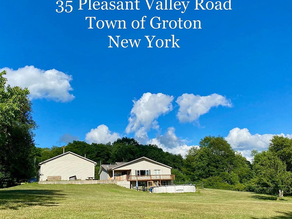 Fun in the Country! Modest from the road, filled with surprises! 2.14 acre lot. Oversized Garage, Pool, Fire pit, House-width Deck, 2 Levels of Outside Space to watch the sunsets! Main Level has Mudroom, Open Floor Plan, Kitchen, DR, LR w/French Doors out to Deck & Porch, 4 Bedrooms, with Primary Bedroom Ensuite w/Walk-in Closet, Washer & Dryer & Hallway Tub/Shower Bathroom. Renovated Lower Level has Studio Space, Guest Bedroom Ensuite w/Jacuzzi Tub & Separate Shower, Bedroom/Office, Family Room, DR Area & 2nd Kitchen, all this has separate entrance & covered porch entertaining space - designed to ensure guests are self-sufficient. Garage is oversized 4 car garage w/workshop & double sized driveway. Your puppies will love the fenced in dog run! Currently financed by VA. House is well maintained and turnkey. There's lots of space inside & out! Convenient local. close to Ithaca (10 mi) & Cortland (11 mi.) More inside than meets the eye - Not a drive by! Call NOW!
