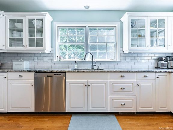 You will love this Cape Cod style home situated on a corner lot with mature trees in one of Middlebury's best neighborhoods! This home offers incredible entertaining space both inside and out. The connected kitchen and dining space is perfect for large gatherings with easy access to the patio. Attractive subway tile, under cabinet lighting, granite counters, stainless steel appliances and large wood burning fireplace are just a few of the features. Outside, the expansive lawn and incredible patio with a pizza oven has easily made this home a popular spot for neighborhood and town gatherings (mostly because of the pizza!). Formal dining room, large family room with fireplace and built in surround sound. First floor master suite and an additional full bath, laundry room and office complete the first level. Upstairs you will find 3 spacious bedrooms and a full bath. This home also features an oversized two car garage with an attached shed and a full unfinished basement for plenty of storage space. Sub panel for a generator, new oversized central air conditioning unit and condenser, new well pump with constant pressure system are some of the other features. This is a solar home. Be sure to check out the virtual tour!