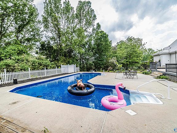Dive into your dream home! Nestled on 3 private acres, this 4-bed gem boasts a sunroom, spacious office, and a playroom for endless fun. Chill by the massive stack stone fireplace or host epic pool parties at the 45,000-gallon pool with its chic pool house. Need more? There’s also a detached workshop and garage. Also a mid-sized animal run for goats, chickens, dogs, or whatever critter you love. Covered by a sturdy metal roof, this pad is all about good vibes and upkeep made easy. I almost forgot to mention the wrap around porch. Your perfect escape awaits! Don't wait book your appointment now.
