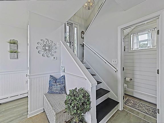 This beautiful home offers a vacation lifestyle every day! Bask in the spectacular, panoramic ocean views from nearly every room. Situated on Strawberry Hill, this property boasts one of Hull's sought-after vantage points. The main bedroom's private deck and a massive private patio offer ideal spots for relaxing and soaking in unforgettable sunrises and moonrises over the majestic Atlantic. Soothing sea breezes flow across the patio as you take it all in. Inside, the spacious kitchen is a chef's dream, featuring a large island, a breakfast nook, a butler's pantry, and beautiful white soft-close cabinetry with quartz counters. The kitchen flows seamlessly into the open living and dining rooms, creating a comfortable gathering space for family and friends. Sliders in both the living room and kitchen provide easy access to the patio. The main suite includes a private bath, walk-in closet and a private deck; The laundry is on the 2nd floor. *NO FLOOD INSURANCE*