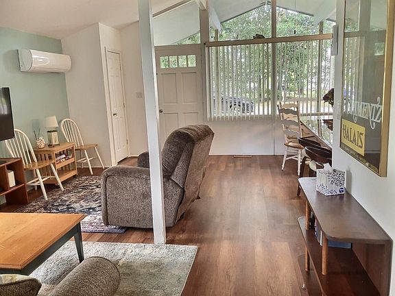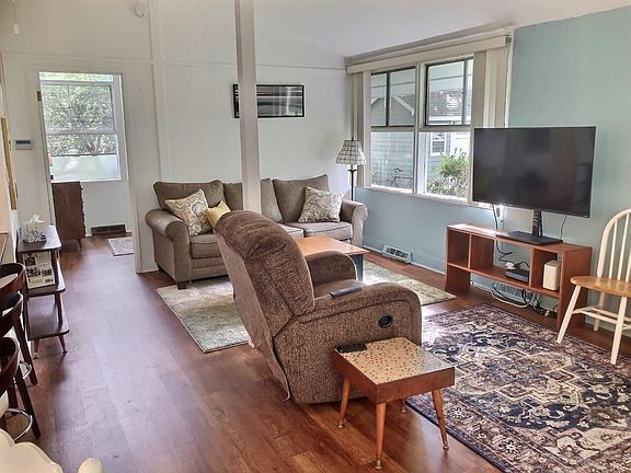 Falmouth only steps to the water! Totally renovated 2 bedroom chalet style cottage with vaulted ceilings, new kitchen, appliances, flooring, bath, ductless heating and AC. 1st floor laundry. New roof, patio, and deck with water views overlooking Great Bay!