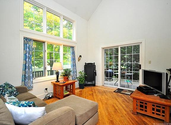 Looking for a starter home? Here it is! Minutes to New Preston Village, or Washington Depot. This condo offers a Hardwood floors on main level, eat-in kitchen, family/TV room with sliders out to wrap around deck, overlooking wonderful quiet back yard, living room with brick fireplace and skylights, master bedroom with plenty of closet space and full bath, 2nd bedroom with full bath and dressing room/walk in closet2 car attached garage, guest parking across driveway.
