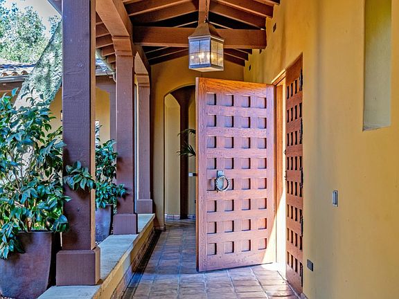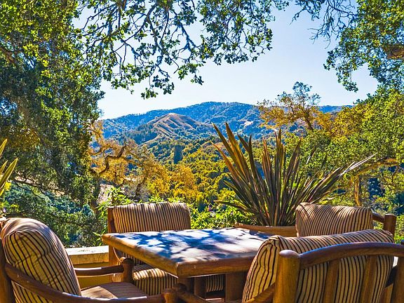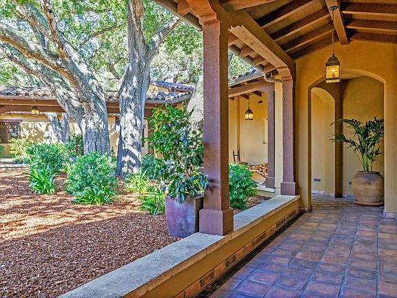 Live amongst the heritage oaks with redwood and ridgeline views, just a short stroll to the nature community's social heartbeat at The Preserves Ranch Club and 15 minutes to Carmel restaurants and schools. Enjoy year-around Mediterranean climate in the sun on this very private 53-acre property with recreation amenities and resident services at your fingertips, including a Tom Fazio Design, Top 100 Rated 18 hole golf course. This single-level 4 bedroom, 4.5 bath Spanish hacienda embraces indoor and outdoor living in the traditional courtyard, viewing deck and screened-in porch. Its seamlessly open living spaces in the central great room and kitchen are perfect for entertaining, while the more intimate master suite and guest wings provide privacy. The attached caretakers house with separate entrance is perfect for friends extended stays. Enjoy the sun and privacy in the oaks and relax by the fireplace after hiking or riding one of the many Santa Lucia Preserve trails.