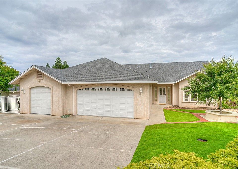 Located in the desirable Lakeside Village Subdivision, this beautiful home is just minutes from Lake Oroville for boating, fishing, hiking trails and many recreational activities. Upon entry, you will notice the vaulted ceilings and crown molding throughout. With both a living room and a family room, there is ample space for family and friends. The cozy family room is complete with a propane fireplace, built in cabinets and glass doors leading to the covered deck and backyard. The open floor plan provides a large area containing the family room, kitchen and dining area. There are plenty of cabinets and countertops with a pantry and breakfast bar in the kitchen. The surrounding windows provide light and views of the East Foothills as well as a peek-a-boo view of Miner's Ranch Reservoir. The large master suite has access to the back deck as well as a coffered ceiling and a large walk-in closet. The master bath has dual sinks, a soaking tub and a separate shower. One of two gated side yards has a concrete driveway with access to the backyard and will provide plenty of parking for recreational vehicles. Under the house you will find a very special bonus area that has been used as a wine cellar, workshop and mancave. The temperature difference in the bonus space is amazing and just imagine spending time in that area during summer. Including the large deck in the backyard, there are patio areas, garden beds, a built-in barbecue and a good sized pond to enjoy. The 3-car garage has plenty of shelving for storage and a wash sink. The yard is low maintenance and water is provided by the South Feather Water District. Don't miss the opportunity to own this well maintained, move-in ready and one owner home on a wonderful cul-de-sac. Call to view this amazing property.