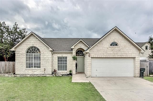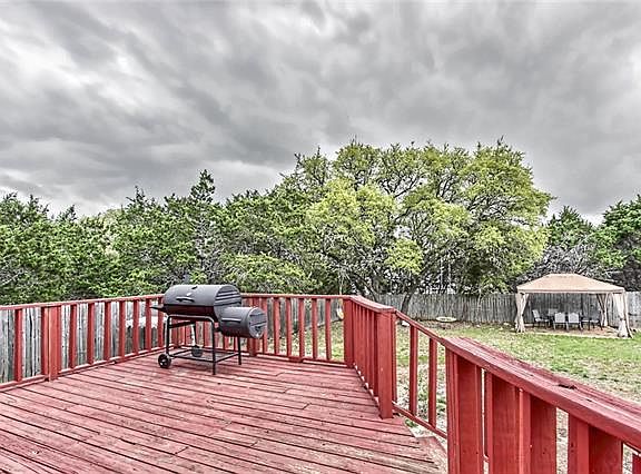HOME SWEET HOME in the heart of the hill country! Replaced 2016: Roof, Water Heater, Garage Door Opener. HVAC 2015! This white rock gem has endless character. Featuring an open floor plan, the living feeds into the kitchen making it wonderful for entertainment. Living space includes cozy exposed rock fireplace! Beautiful flooring with kitchen boasting stainless steel appliances. Great size utility room! The backyard space is to die for with extended deck overlooking complete & wooded privacy. MUST SEE!