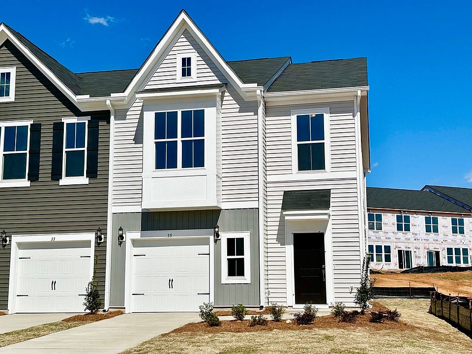 Affordability and style converge at this end-position townhome! Light gray cabinetry accented with gold hardware lends a vogue vibe to the island kitchen. Host loved ones with ease in this open-concept layout drenched in natural light from windows on two sides. Sprawling upstairs primary suite with luxe bath, walk-in wardrobe closet, and flex space - ideal for exercise room, home office, or sitting area. Stroll to the neighborhood green or planned fun - pool, pickleball, and playground. Quick access to Raleigh/RTP via 40, 70, or the upcoming 540. Downtown Clayton in moments from this stellar in-town local.