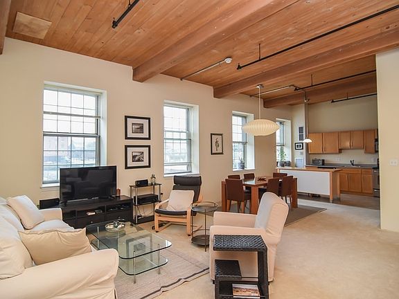 Welcome to Renaissance on the River, a restored historic industrial mill nestled on the banks of the Merrimack River! This loft style unit located on the top floor, offers fantastic natural light with wonderful park & sunset views. Well-maintained & vibrant open-concept living/dining area with high ceilings and 8 oversized windows accented with exposed wooden beams and wooden post. A cozy bedroom area with exposed brick walls. Open kitchen boasts plenty of counter space with maple cabinetry, a center island, tile flooring & stainless steel appliances. Washer & dryer hookup also conveniently located in unit. Condo fee includes heat/AC, water, hot water, snow removal, maintenance and a deeded parking spot. On site condo amenities include recreation rooms & outdoor park/riverwalk to enjoy the fresh air. Just a short walk to outdoor parks and downtown. Minutes to major highways & commuter rail.