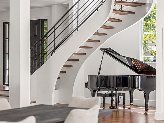 A custom architectural masterpiece situated on a spacious half-acre corner lot in the highly sought-after Sherwood Forest / Ansley Park community. This striking modern European–style residence offers over 7,800 sq. ft. of refined living space filled with natural light. Perfectly positioned between Buckhead and Midtown, the home embodies sophisticated city living—just moments from Ansley Golf Club, Microsoft Headquarters, the Google building, Piedmont Park, the Atlanta Botanical Garden, and an array of premier shopping, dining, and urban conveniences. Designed thoughtfully by Keith L. Boskoff, the property features three distinct structures with parking accommodations for 12–15 vehicles. The main home includes 4 bedrooms and 4.5 bathrooms, showcasing timeless open-concept architecture on the main level with a dramatic two-story great room, elegant spiral staircase, high ceilings, and abundant natural light throughout. The residence blends chic design with everyday functionality—ideal for both grand entertaining and intimate gatherings. At the center of the home sits the chef-inspired kitchen, equipped with premium stainless-steel appliances, granite countertops, extensive custom cabinetry, a cozy breakfast nook, and an adjacent butler’s pantry. Outdoor dining is effortless on the adjoining flagstone patio, extending seamlessly from the kitchen and formal dining room with beautiful views of Midtown’s skyline. The expansive great room, highlighted by its striking double-sided fireplace and custom mantle, serves as a luxurious hub for relaxation and socializing. It is complemented by a stylish adjoining sitting/entertaining room and a sophisticated formal library, which may also function as an additional guest bedroom. The upper level features a grand primary suite, a serene retreat with a spacious sitting area offering beautiful landscape views, a double-sided fireplace, and a dramatic barrel-vaulted ceiling. The spa-like primary bathroom includes dual vanities, two showers, and a large contemporary whirlpool tub designed for two. A private balcony overlooks the courtyard, and the suite also includes a mini-kitchen, laundry area, and generous closet space. This level also offers a charming loft and two high-ceiling guest suites, each with private baths and plentiful natural light. Additional living spaces include a one-bedroom basement apartment with a finished terrace level, private entrance, and large concrete parking area. Above the spacious two-car garage, the carriage house provides a full additional suite featuring a bedroom, bathroom, family room, and kitchen—ideal for an in-law suite, Airbnb rental, or extended-stay guests. The property’s outdoor areas showcase multiple flagstone patios and balconies, all overlooking a beautifully maintained, level backyard with room to add a large swimming pool, sauna, fire pit, and expansive entertaining spaces—all while enjoying exceptional Midtown high-rise views. This is a rare opportunity to own a custom modern residence in one of Atlanta’s most iconic neighborhoods, offering unmatched convenience to the best of Midtown and Buckhead within minutes.