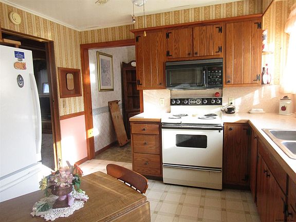 Great way to start home ownership with this 2 story home in the Village of Canajoharie reasonably priced. Two bedroom, 1.5 Baths. Updated eat in kitchen with appliances and updated bathroom. Vinyl siding and replacement windows throughout. Previously the family room area was used as a nursery school--all sorts of potential for in home occupation use. This area has a separate entrance. Large laundry/utility room area. Heats with natural gas furnace. Nice flat back yard area which includes the adjoining lot with road frontage access on Schultz St.