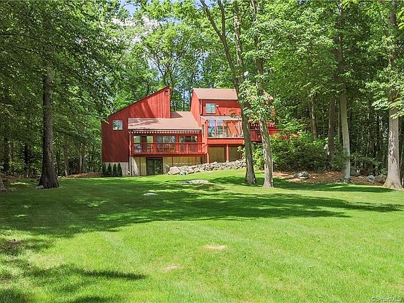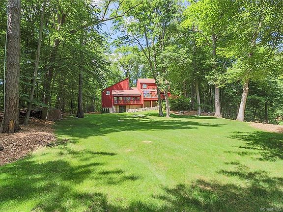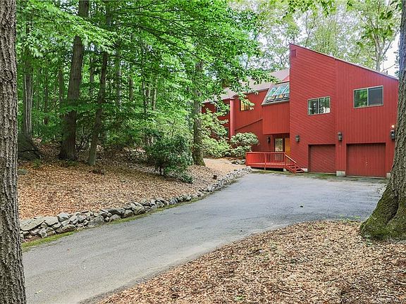 Tucked comfortably amidst lush greenery and mature trees, this contemporary home enjoys elevated, views of the lake. Set on a private 2.36 acres in North Stamford, this desirable property features open floor plan,upper level Master suite with walk-in closet, library and double fireplace. Through the front door of the main living level is a spacious entryway, half bath, and coat closet. The main floor also features a large deck and enclosed sun room, the open-concept living room with fireplace and sitting area, the kitchen and separate eating area and dining room. The lower level features wall to wall sliders, access to the garage, and unfinished basement space. Upper level has two large bedrooms and a full bath. A must see.