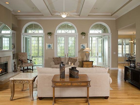 Spectacular home, seconds to the Taconic in a gated community. When you enter this home you will be in love! Home is filled with natural light, soaring conferred ceilings, custom trim and crown moldings, hardwood floors throughout the living spaces and posh carpet in the bedrooms. Large open living room with stone fireplace and French doors leading to the heated and air conditioned sunroom. Custom professional kitchen with maple cabinets, granite counters, Thermador 6 burner range and sitting area surrounded by windows. First floor master en suite with tray ceilings, walk in closets, large bathroom with jacuzzi tub and water closet, as well as French doors leading to the sunroom so you can enjoy your tea in the morning while watching the sun rise. Home office off of the living room with French doors. There are 2 bedrooms upstairs both with walk in closets and one with French doors leading to its own deck with beautiful sunsets. Also upstairs is a full bathroom and a bonus room. Other enhancements are a whole house generator, foam insulation, 1000 gal propane tanked, separated A/C, on for each level. 3 car garage is fully insulated as well as the 4 car garage in the basement with foam insulation, basement has finished storage space, electric awning over Trek decking and another one over the paver patio connecting to the in-ground fiberglass pool.