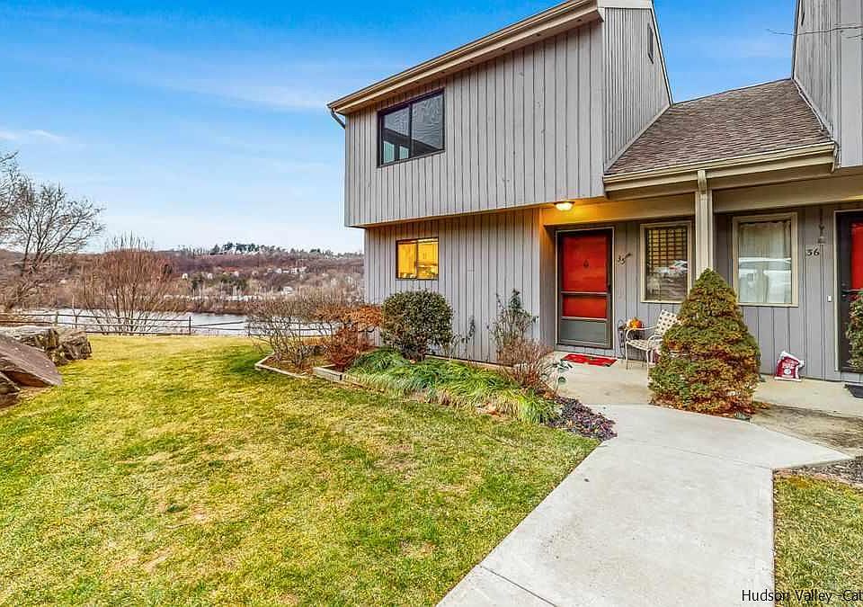 Living in a Townhouse isn't for everyone but if you're even thinking about it you need to check out this end unit. This is the only end unit with extra windows in the bedrooms to capture the Rondout Creek views and bring in plenty of sun light. The back deck overlooks the creek's bank and looks out onto hillside views of Kingston. Look to the north to see the majestic historical Kingston-Port Ewen Bridge over the Rondout Creek, which enhances your skyline. To the south is another historical site in the distance: the Rondout Train Trestle. Enjoy the wood burning fireplace in the living room with vaulted ceilings. There are two good size bedrooms on the second floor and a balcony over looking the living room. Downstairs finished basement gives you extra living space (not included in total sq. ft.) and a sliding door to your patio. This unit sits less then a half a mile from some of Kingston's finest restaurants, bars and entertainment. Enjoy siting at the park at the creek's edge and a view of the Hudson River. There are lovely walking trails and easy put-ins for kayaking and canoeing for those looking to explore. This is an adventure waiting for your imagination! (All real estate professionals and members of the public are required to wear a mask when visiting this property.)