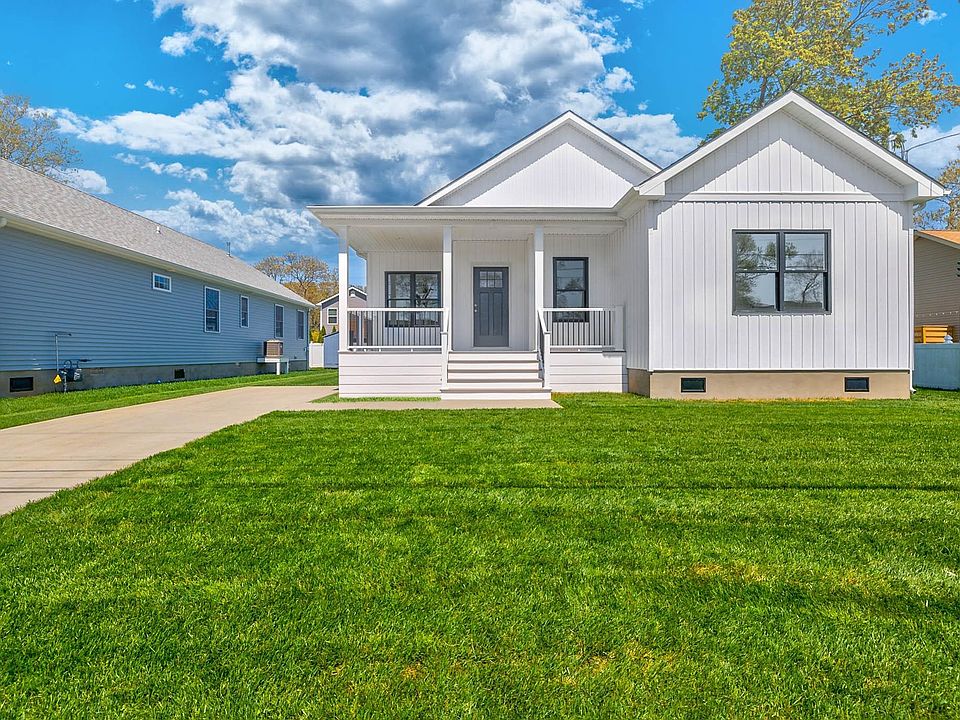 Brand new construction by Power Home Improvements. Photos are of a similar build completed by this developer. Finishes and materials will be the like-type quality as represented in the attached photos. The exterior of the subject property will be Pacific Bluen with white trim. This beautiful ranch style home is located two short blocks to the Delaware Bay and offers approximately a comfortable 1,700 square feet of living space . There is a covered front porch that welcomes you into the great room which is a big, open, sunny and bright space that spans the length of the house. There is a nice big living room at the front of the house and the kitchen and dining area area at the rear. The kitchen will have a center island with granite counter tops and white shaker cabinets along with a full stainlees steel appliance package and a pantry closet. Sliding glass doors lead from the dining area to the big open deck. The bedrooms are split for privacy. The primary bedroom sits alone at the rear of the home and has a large walk in closet, walk in shower, seperate vanities and a separate watering closet. A private hall bath is in between the two larger than average guests bedrooms. A laundry room is located conveniently just off of the foyer. The main rooms including all bedrooms will all have engineered flooring. The bathrooms will have tile. The HVAC system and duct work will be in the large stand up attic. Screens for windows are included. The grass will be sod and there will be a sprinkler system.