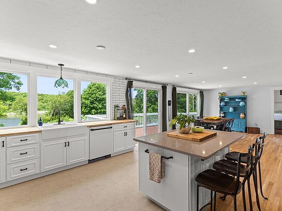 If you really want a life you don't need a vacation from, this is the house for you (and all the friends you want to invite). Here is your chance for your own private resort complete with chip & putt golf course located on the highly desired Davisville peninsula. Step out any of the 3 sliders off the renovated kitchen/dining area with gas fireplace, living room and 1st floor primary en suite bedroom on to the elevated deck looking over your acre of land and in-ground heated salt water pool. The house has a total of 4 beds, 3.5 baths with the ease of laundry on the first floor in the 1/2 bath, 3 large bedrooms and full bath complete the 2nd floor. Even the 2 bonus rooms in the walk out basement have water views! So many uses for the lower level mud room/office with cubbies to store all you need for the endless outdoor fun. Another slider leads to the cabana bar, patio, & fire pit. The outdoor shower is perfect to rinse off after a swim and every local will tell you this view includes year round sunsets. See attached doc for specs about chip & putt.