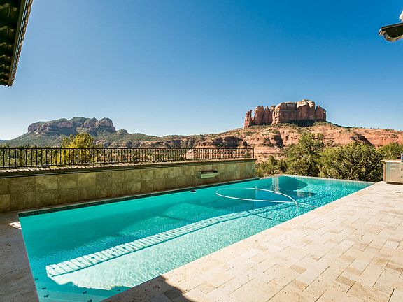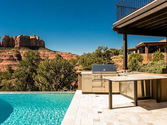 BRAND NEW never lived in architecturally gorgeous home with mind blowing unobstructed panoramic VIEWS of Cathedral, Bell Rock and Courthouse. LaCantina bifold doors at upper and lower levels bring spectacular views of Cathedral into your living rooms, one up and 1 down as well as Full upper and lower master bedrooms. Everywhere you turn are custom premium features. Hand carved limestone, Tabarka tile, marble bathroom floors, Rohl plumbing fixtures, San Tangelo lighting, Professional Thermador Kitchen appliances, Viking Professional grade outdoor kitchen, Full size elevator, Sonos sound system, full smart home technology, 245 sq.ft. custom home theater not included in county sq. footage. If you are searching for a home with world class finishes and design, look no further. VIRTUAL TOUR
