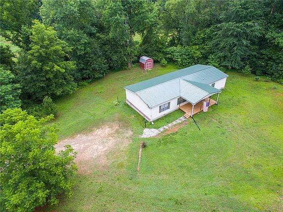 This is NOT a typical mobile home. Doublewide construction, a permanent foundation, w/2+ acres. Beautifully maintained & not in a subdivision. 3 bed/2 full bath, large eat in kitchen w/separate dining area. Large walk in closets in all bedrooms. Split bedroom plan, large master w/massive bath. All appliances stay w/home. New metal roof & gutters, upgraded lighting & doors. Separate rear entry into mud/laundry room. 10'x10' storage building in back. Large front porch. Plenty of room to enjoy inside & out. Peaceful location, great space for a low cost lifestyle.