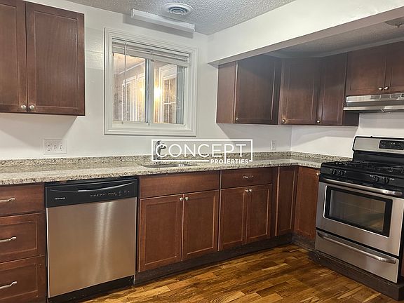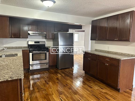 Huge 5 bedroom, duplex apartment available for lease on Roughan Street in Revere, MA. This unit features 5 large bedrooms, 2 full bathrooms, dining room and living room. Some rooms have wood floors, the others are newly carpeted. Tenants pay for all utilities - water, gas heat, gas cooking and electricity. 1 parking space included in the rent