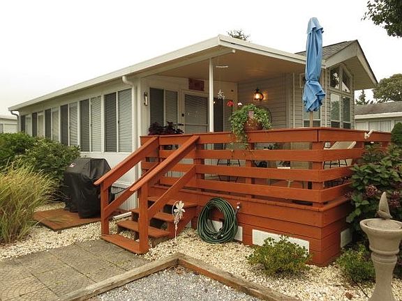 If you missed out earlier this year on finding the perfect Bay Cove Resort Community Park Home; then don't delay, it is here now and available for you this Fall Season! Come see why this meticulously maintained 2 Bedroom, 1.5 Bathroom, Chariot Model will be the perfect opportunity for you to finally call Bay Cove Resort your seasonal home at the Jersey Shore! Located in the desirable front section of the Park, the custom paver walkway welcomes you from your own two-vehicle parking to the well-maintained exterior that is surrounded by low-maintenance, beautiful plantings, a ground-level grill area with installed propane, onto a lovely, gated deck that provides both sun and shade! The back of the unit has attached storage, and there are multiple water spigots and exterior electric outlets as well. As you enter inside, into the light and airy cathedral ceiling Sunroom, with updated windows, you will enjoy the beautiful newer wall to wall carpet along with separately installed propane heater for the cooler off-season months! The main areas of the home have newly installed hardwood flooring, as well as tiled floors in the bathrooms. The good-size and very efficient kitchen has a full-size oven, double sink, along with lots of storage and counter space. Entertaining? The large and sunny dining area is conveniently located between the kitchen and the sunroom for full enjoyment. Two full size carpeted bedrooms located at either end of this floorplan offer their own closets, as well as convenience and privacy with separate bathrooms! You will find that this home is very clean and well-maintained...including a new roof that was installed just two years ago! Just come and enjoy yourselves with this wonderful "turn-key" opportunity...Bay Cove Gated Community offers full-time occupancy from March 1 until November 1, with full Weekend (Friday afternoons to Monday mornings) and extended Holiday access in the off-season!