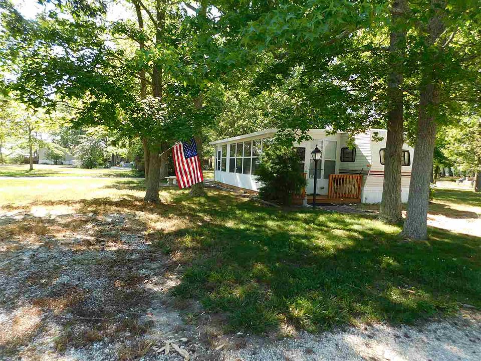 Turn key! Ready for your vacation use & enjoyment. This lovely home can be your Shore retreat! Nestled in the woods and just a short walk to the Delaware Bay, where you can fish, swim or kayak. Enjoy the many Park amenities, or just sit on your patio and watch the sunset. The Park is just mins from Stone Harbor Beaches, entertainment and night life. This home offers 3 bedrooms, a full bath, eat-in kitchen, breakfast nook and a delightful family room with lots of natural light and windows. Central Air, Forced hot air, as well as a portable AC and electric baseboard heat. Outside there is a small front porch, a nice brick patio with a pretty stone/concrete pedestal table with benches, an 8 x 8 storage shed, 2 car parking and plenty of wide open space!